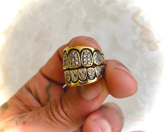 Sws Of London Design Gold Grill Cz Teeth Bling Ring Hip Hop Etsy Uk